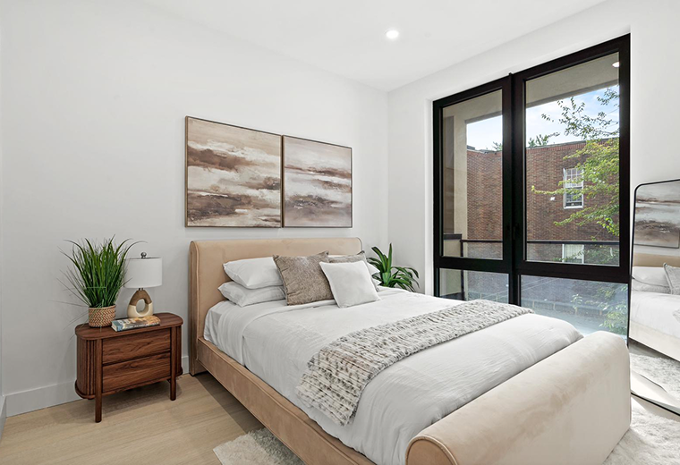Designed as serene retreats, Layla’s bedrooms combine oversized windows, lofty ceilings, and white oak floors to create light-filled, calming spaces. Custom closets and refined finishes add both elegance and function, while select homes extend the sanctuary outdoors with private terraces.